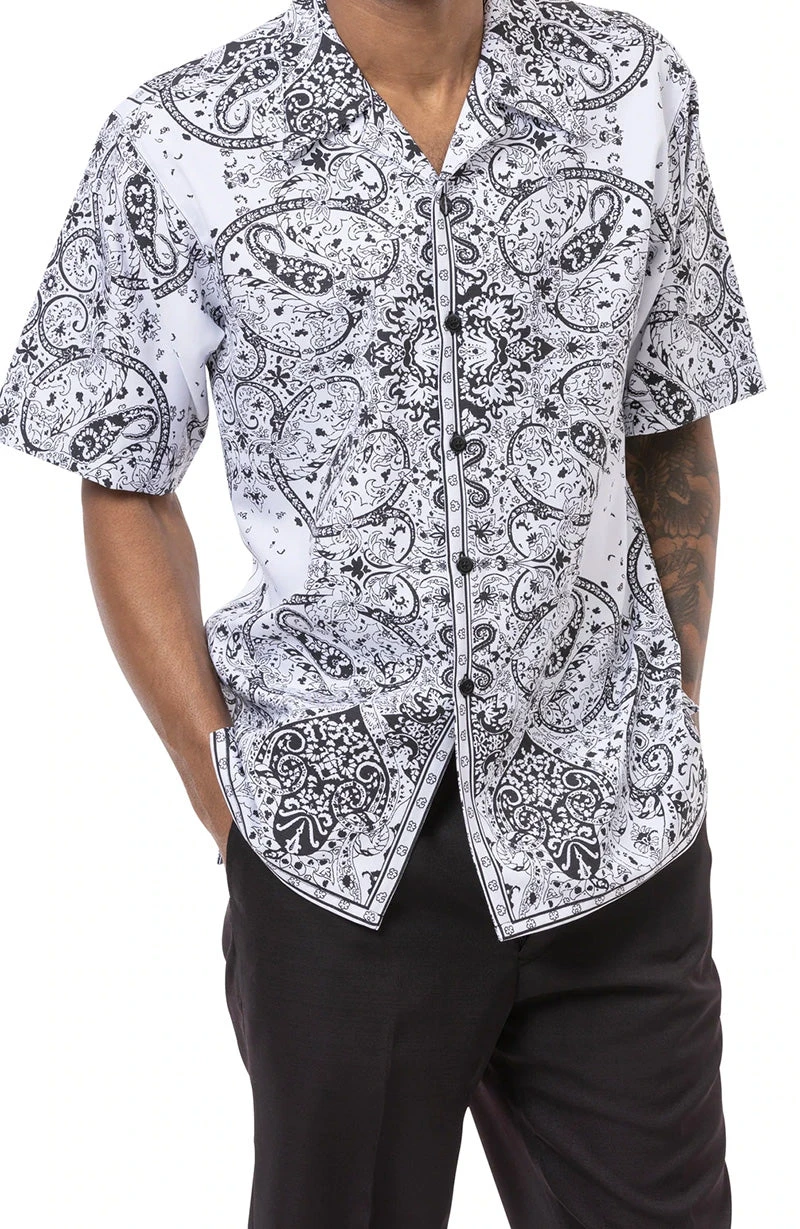 (L/36) Black 2 Piece Short Sleeve Men’s Summer Walking Suit Minimalist Straight Lines Design